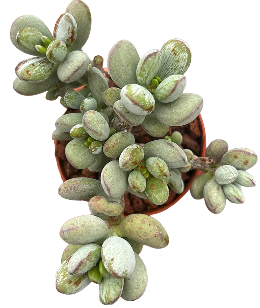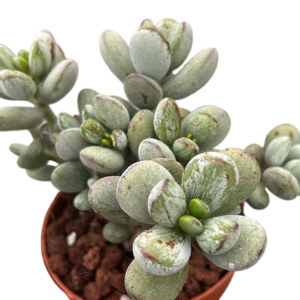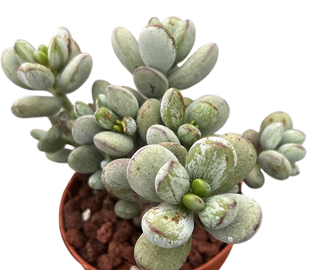 Esta suculenta no solo es bonita, también es muy fácil de mantener. Colócala en un lugar con mucha luz natural o sol directo suave, riega solo cuando el sustrato esté completamente seco y evita mojar sus hojas para preservar su apariencia. Tolera muy bien la sequía y es ideal para climas cálidos o como planta de interior cerca de una ventana luminosa. En invierno, protégela del frío intenso para mantener su salud y color.