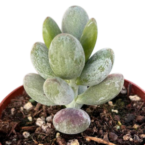 Esta suculenta no solo es bonita, también es muy fácil de mantener. Colócala en un lugar con mucha luz natural o sol directo suave, riega solo cuando el sustrato esté completamente seco y evita mojar sus hojas para preservar su apariencia. Tolera muy bien la sequía y es ideal para climas cálidos o como planta de interior cerca de una ventana luminosa. En invierno, protégela del frío intenso para mantener su salud y color.