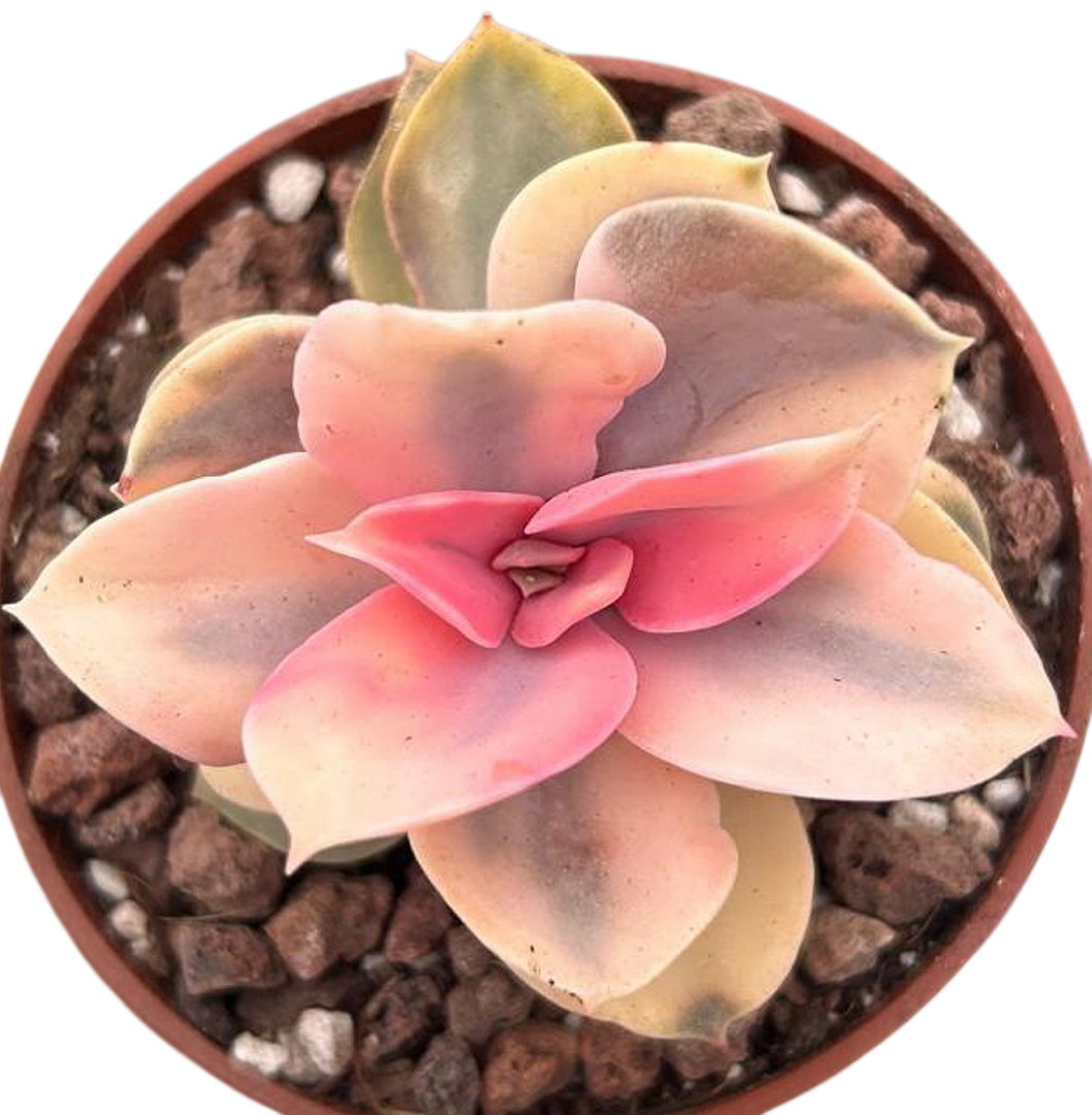 ¿Quieres darle un toque vibrante y original a tu hogar o jardín? La Echeveria Rainbow es la suculenta perfecta para ti. Esta belleza variegada destaca por su espectacular abanico de colores que van desde el verde suave hasta el rosa, amarillo, crema y rojo, creando un verdadero arcoíris natural que cautiva a primera vista. ¡Un espectáculo de tonalidades que ilumina cualquier rincón donde la pongas!
