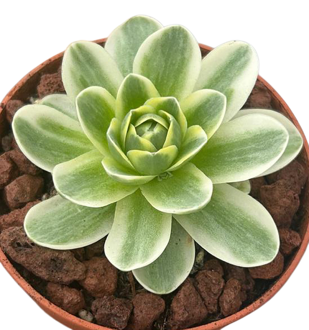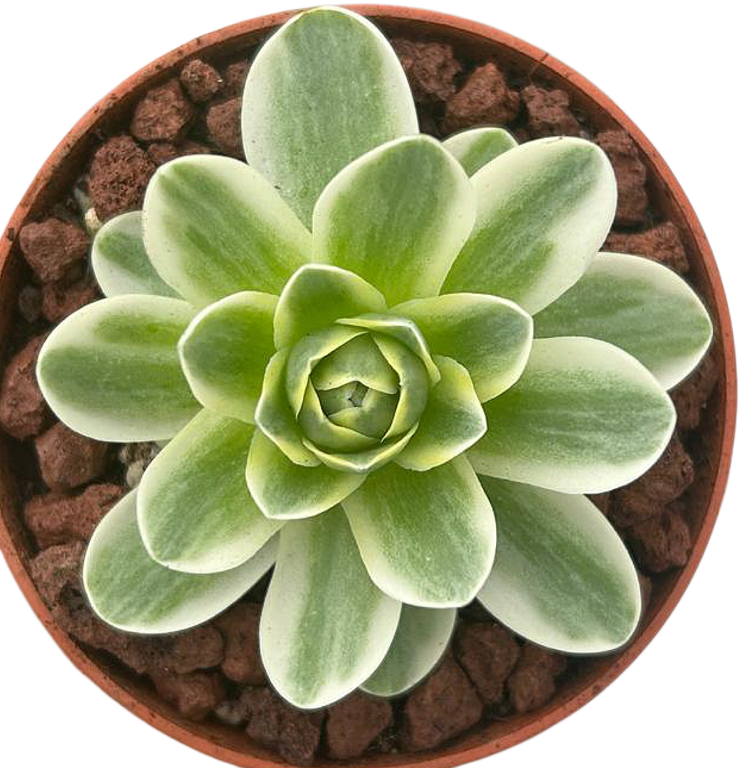 ¿Imaginas una planta que combine lo exótico, lo delicado y lo extraordinariamente bello en una sola roseta? ¡La Greenovia aurea variegada hace realidad ese sueño vegetal! Con sus hojas perfectamente dispuestas en forma de rosa y su variegación en tonos verdes, crema y suaves toques rosados, esta joya canaria se ha convertido en una auténtica celebridad entre coleccionistas y amantes de las suculentas. Originaria de las Islas Canarias, esta suculenta es tan elegante como resistente. Su forma recuerda a una flor de rosa cerrada, y cuando se combina con la mágica variegación (es decir, la mezcla de colores en sus hojas), el resultado es una planta de apariencia casi mágica, que parece sacada de un cuento de hadas.